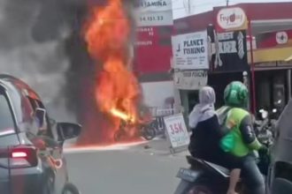 Tangerang — Sebuah sepeda motor terbakar hebat di area stasiun pengisian bahan…