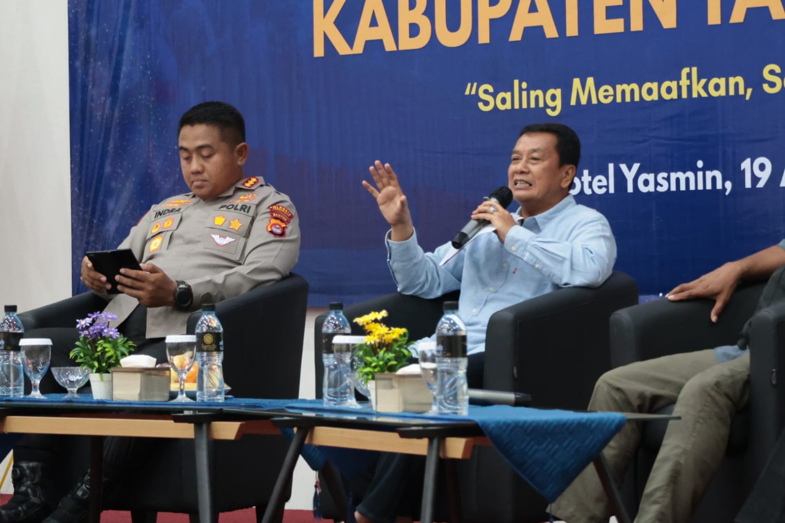 Menutup sambutannya, Bupati menyampaikan permohonan maaf lahir dan batin dalam suasana Halal Bihalal serta berharap momentum tersebut dapat memperkuat persatuan.
