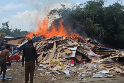 POJOKNUSANTARA - Kobaran api disertai ledakan tiba-tiba muncul dari lapak limbah plastik di Kampung Lobang, Desa Sukamurni, Kecamatan Balaraja, kabupaten Tangerang,…