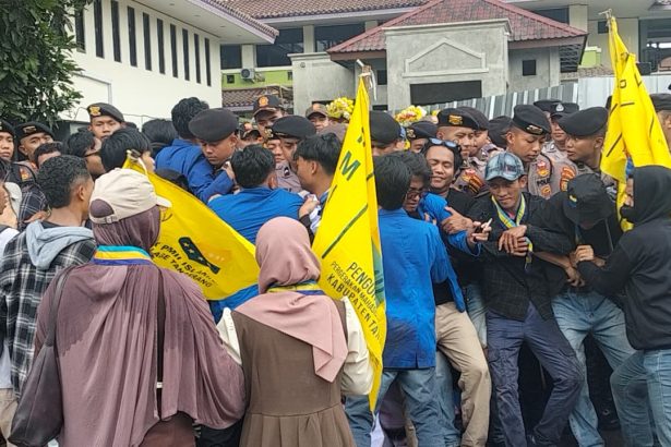 POJOKNUSANTARA - Aksi demonstrasi massa gabungan dari HMI, PMII dan BEM UNIPI di Gedung DPRD Kabupaten Tangerang berjalan aman dan…