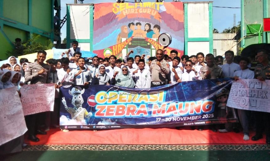 POJOKNUSANTARA - Satlantas Polresta Tangerang, Kamis (27/11/2025) menyambangi Madrasah Aliyah Negeri (MAN) 2 Balaraja. Tujuannya, untuk menyosialisasikan Operasi Zebra Maung 2025, dengan target utama audiens adalah para pelajar. Kasat Lantas…