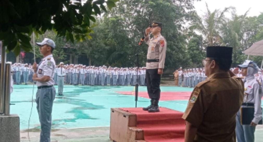 Tangerang — Kapolsek Cisoka, Iptu Aditya Surya Sakti, memberikan edukasi mengenai bahaya penyalahgunaan narkotika kepada ratusan siswa SMKN 9 Kabupaten Tangerang saat upacara bendera, Senin (26/1/2026). Kegiatan ini merupakan langkah preventif kepolisian dalam membentengi generasi muda dari ancaman narkoba.