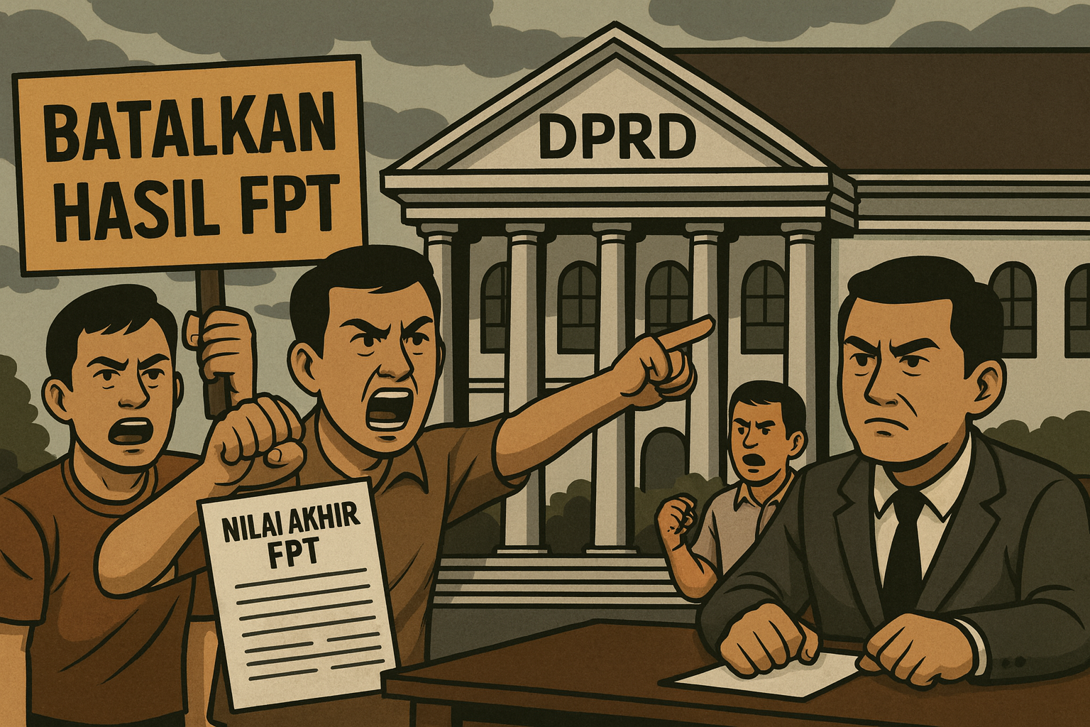 “Kami meminta Gubernur Pak Dayat tidak mengesahkan hasil FPT. Seleksi harus diulang dari awal, disiarkan langsung, supaya publik tahu siapa yang berkompeten dan siapa yang ‘titipan’,” tegas Alam.