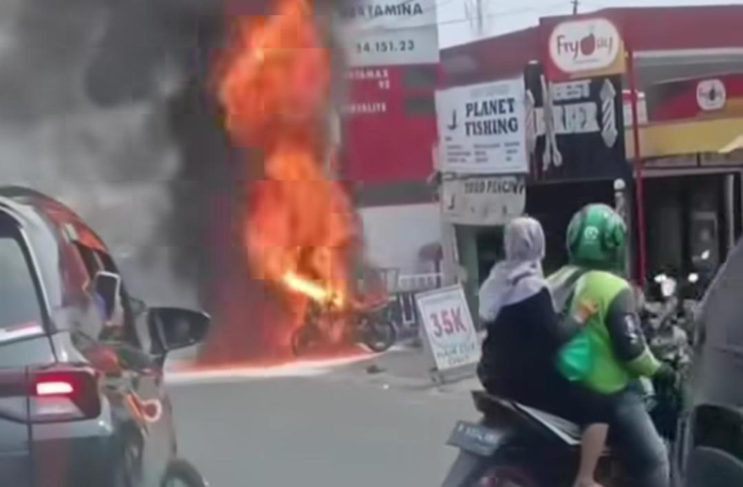 Tangerang — Sebuah sepeda motor terbakar hebat di area stasiun pengisian bahan bakar umum (SPBU) di Jalan H. Mencong, Sudimara Timur, Kota Tangerang, pada Minggu (19/04/2026).