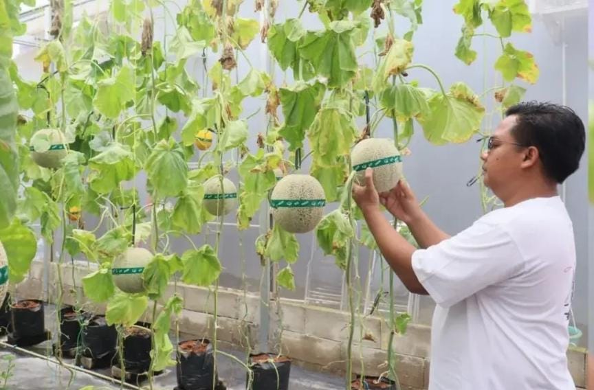 Ade menjelaskan, terdapat sekitar 148 tanaman melon yang dikelola secara intensif dengan sistem hidroponik. Metode ini dinilai lebih efisien karena mampu mengoptimalkan penggunaan lahan, nutrisi, serta air, sekaligus lebih ramah lingkungan dibandingkan sistem pertanian konvensional.