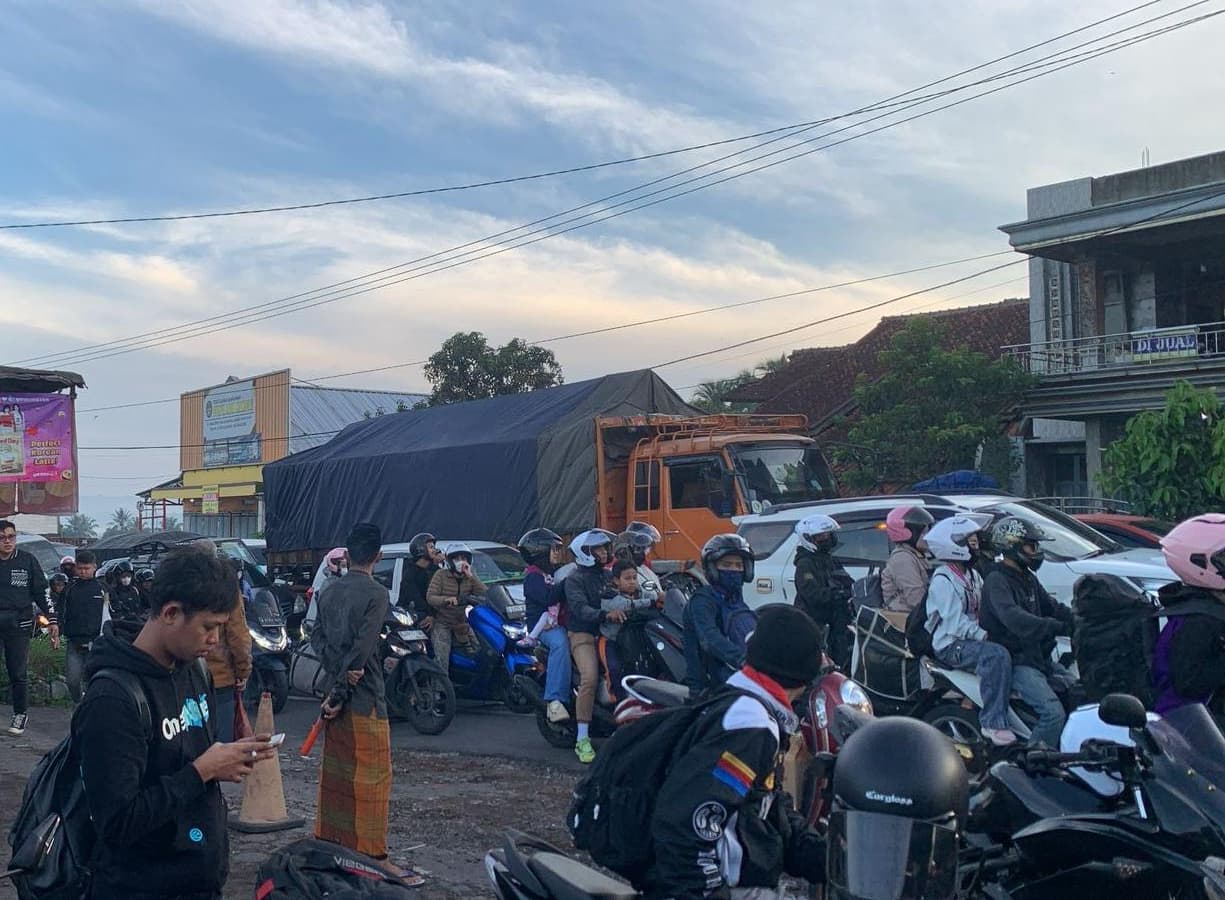 Lonjakan volume kendaraan didominasi sepeda motor yang bergerak beriringan dalam antrean panjang. Kepadatan terjadi di sejumlah titik krusial, terutama di kawasan tanjakan, tikungan sempit, serta pusat keramaian yang menjadi simpul pertemuan arus kendaraan.